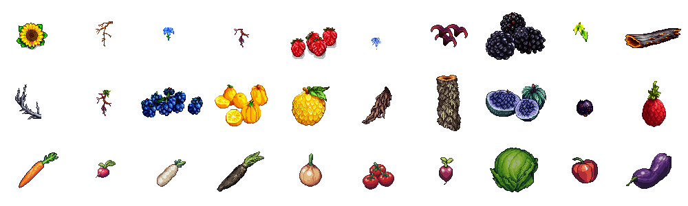 | Tags | Fantasy, Farming, Icons, items, Pixel Art, plants, potions, Sprites, Tileset |